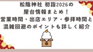 2026年の松陰神社(世田谷)初詣の屋台情報を、公式の年末年始開門・授与所時間とあわせて整理。出店エリアの傾向、参拝時間、混雑回避のコツ、アクセスも解説します。