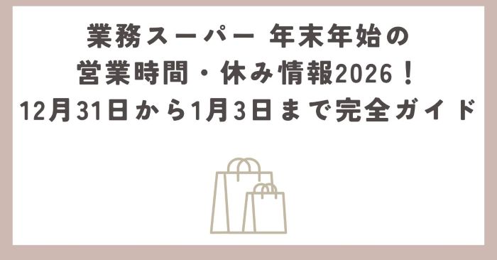 以下では、業務スーパー 年末年始の営業時間・休み情報2026(12/31〜1/3)を、確認手順→日別の動き→予測(2025-2026が出ていない場合の読み)→混雑&買い物術の順でまとめます。