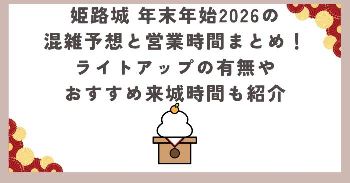 この記事では、姫路城の公式情報をもとに、2025-2026年末年始の営業時間・休城日・混雑予想をわかりやすく整理。