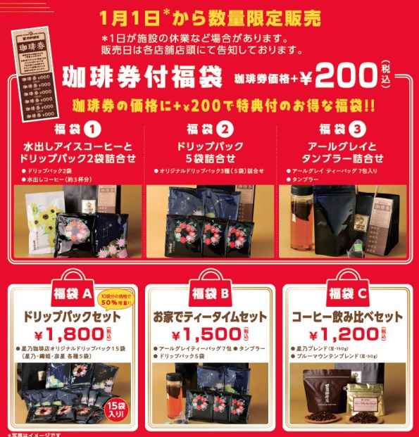 ・珈琲券付福袋:各店の珈琲券価格+200円