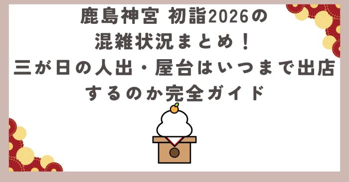 この記事では、鹿島神宮 初詣2026について「混雑状況(いつ・何時がヤバい?)」「三が日の人出予測」「屋台はいつまで?」を、2024〜2025の公開情報を根拠に分かりやすく整理しました。
