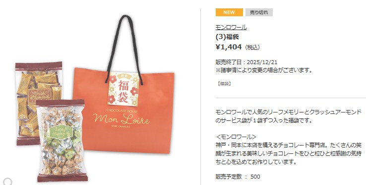 - 近鉄百貨店ネットショップでもモンロワールの福袋ページ掲載あり(売り切れ表示)。