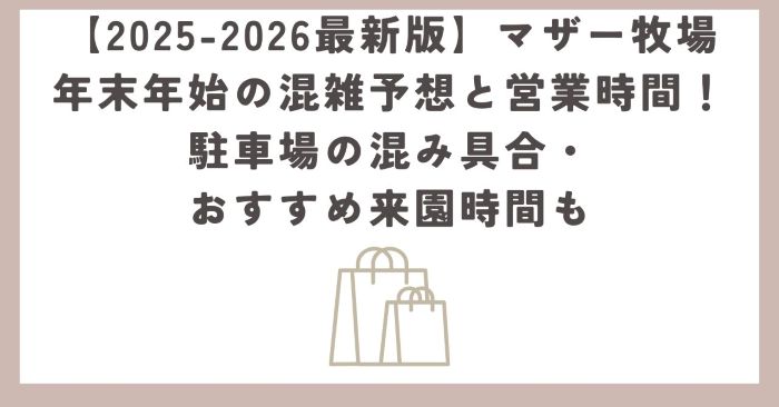 そこで本記事では【2025-2026年最新版】として、マザー牧場の年末年始における営業時間・休園日・混雑予想・駐車場の混み具合を徹底解説。