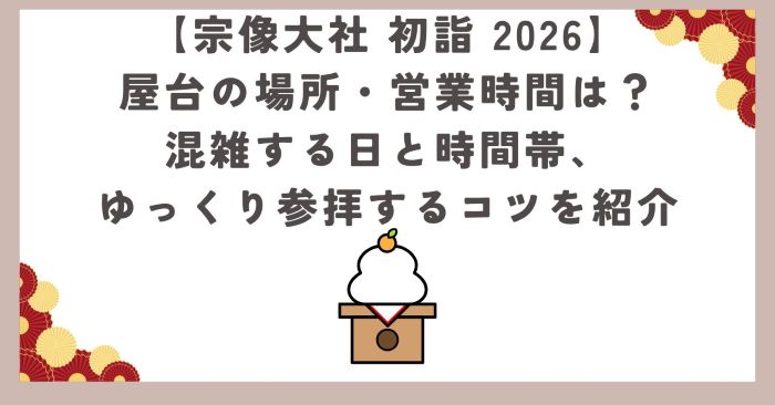 この記事では【宗像大社 初詣 2026】に向けて、屋台の場所・営業時間の予測、混雑しやすい日時、比較的ゆっくり参拝できる狙い目時間帯、渋滞や人混みを避ける具体的なコツを徹底解説します。