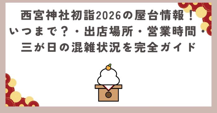 西宮神社の初詣は「屋台がいつまで出るのか」「どこに並ぶのか」「何時までやっているのか」が気になるところ。