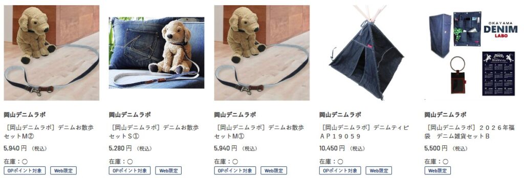 - 直接の中身は未確認ですが、岡山のデニムや帆布を使った自社製デニム雑貨が主力で、小物(ポーチ/ボトルケース/スクールセット等)の価格帯と構成からみて、百貨店の福袋でも雑貨の詰め合わせ型になっている可能性が高いです