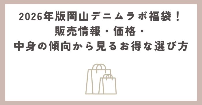 - 岡山デニムラボの2026年福袋は「5,500円/デニム雑貨4点+1万5,000円相当」というお得な内容。