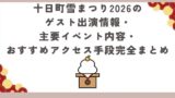 臨時駐車場やシャトルの詳細は年によって変わるため、直前の公式情報を確認しつつ、定番企画(そば早食い・餅拾い・演舞・雪灯籠)を軸に当日の計画を立てておきましょう。!