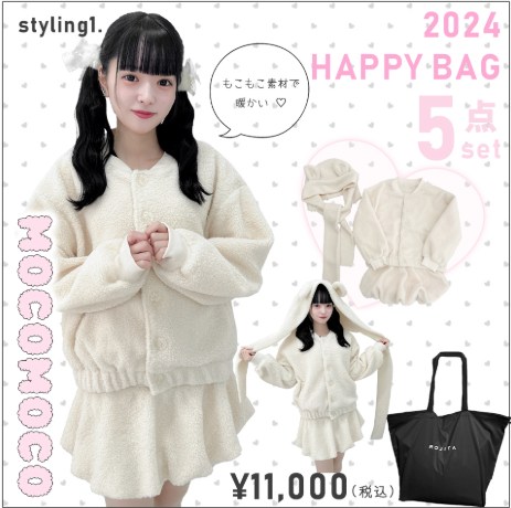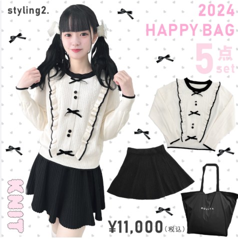 2023年は16,500円のリッチ設定。うさ耳ブルゾンやレースアップのリボンリュックなど、ロジータらしさ全開の“地雷かわいい”アイテムで固められ、ファンに刺さる内容でした。