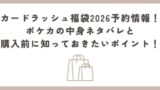 - ゲーム・フィギュア・トレカだけでなく、「映像・音楽ソフト」「書籍/コミック」「グッズ/ホビー」といった幅広いジャンルからの袋が出る可能性が高い。