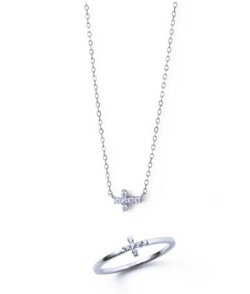 解説:公式オンラインの商品ページでは、「横向きクロスモチーフのネックレス+リング」2点セットで5,000円と明記。
