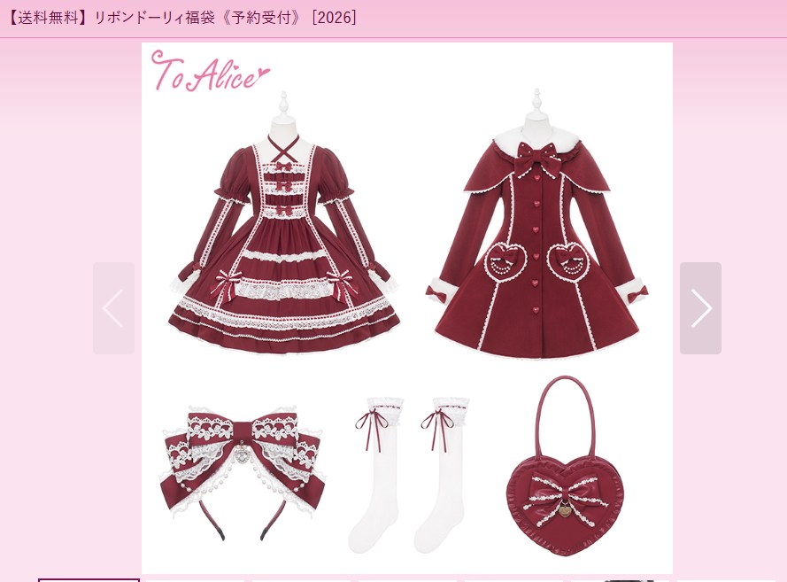 • 公式オンラインストア:ToAlice公式通販サイト内「福袋/HAPPY BAG」ページに掲載・販売。