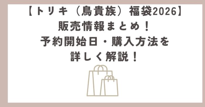 今回はその一連の販売情報(予約開始日・購入方法・注意点など)を、2026年福袋として整理してお届けします!