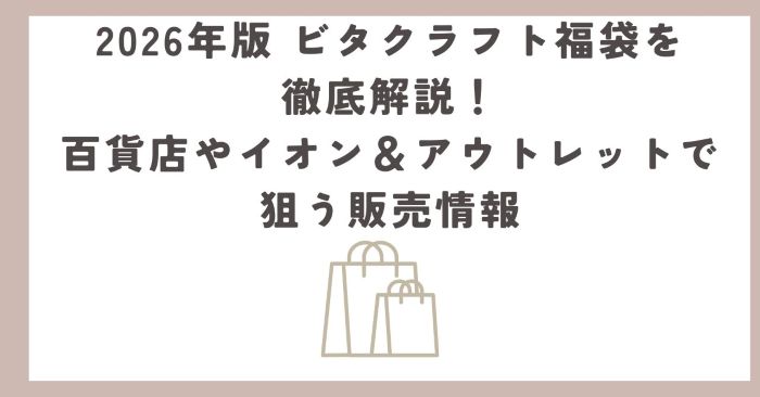 各館の福袋特集で “Vita Craft/ビタクラフト” を検索。 - ビタクラフト公式オンライン:例年年末に専用ページで販売(2025年は完売表示)。2026年版は続報待ち。