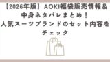- 公式オンラインストア(洋服の青山 公式通販):毎年福袋特集ページが開設。